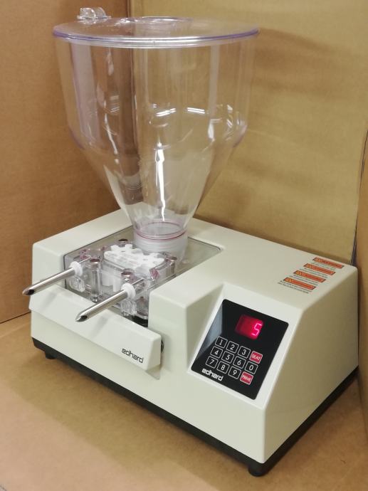 PRODAM NOV ELEKTRIČNI DOZATOR NADEVOV, MARMELAD, KREM IN POLNIL ZNAMKE EDHARD, DIGITALNA NASTAVITEV KOLIČINE NADEVA, VOLUMEN POSODE 5 ALI 10 LITROV, PRIKLOP 230V. MOŽNOST RAZLIČNIH NASTAVKOV-IGEL ZA POLNJENJE, LAHKO TUDI PREKO FLEKSIBILNE CEVI ZA OKRAŠEVANJE ALI POLNJENJE IZDELKOV NA PEKAČU. PREIZKUŠENA TRPEŽNA NAPRAVA DOBRE KVALITETE, FLEKSIBILNA UPORABA.