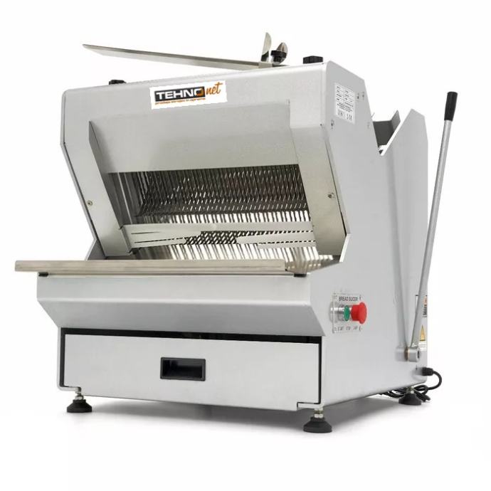 Ta rezalnik kruha, izdelan iz robustnega nerjavečega jekla, je vzdržljiv stroj in je zasnovan za rezanje različnih vrst kruha. Naše kruhoreznice so na voljo z različnimi debelinami rezanja. Rezalnik ima nazobčana rezila iz nerjavečega jekla.
