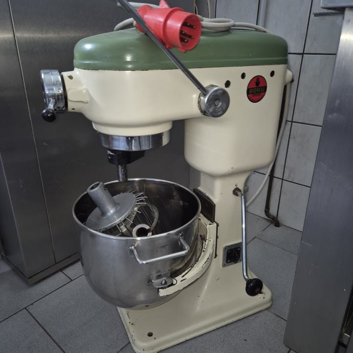 PRODAM RABLJEN PLANETARNI MEŠALNIK ZNAMKE BOKU, KAPACITETA 20 LITROV, ZRAVEN STA METLICA ZA STEPANJE IN KLJUKA. PRIKLOP 380V.