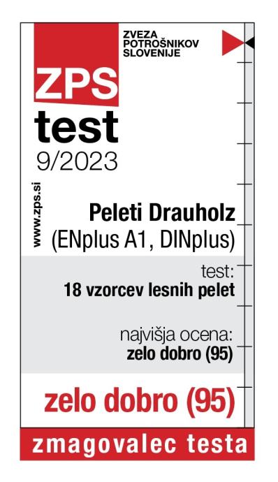 Zveza potrošnikov Slovenije je na testu za zimo 2023/2024, pelete Drauholz uvrstila NA 1. MESTO in jim dodelila tudi značko Dobro razmerje med kakovostjo in ceno.
