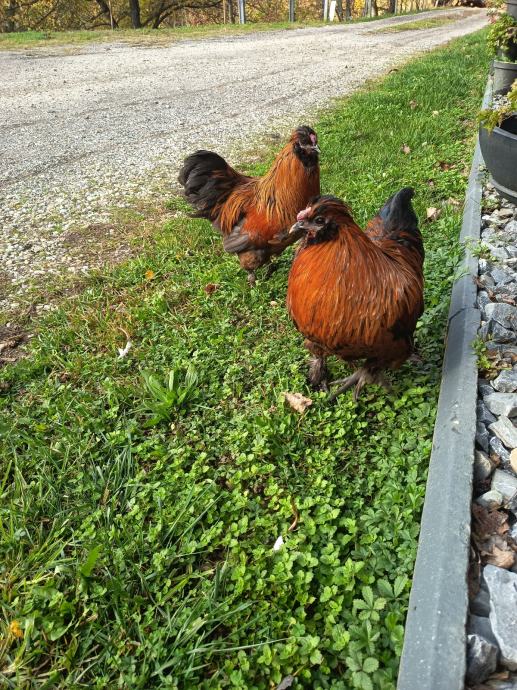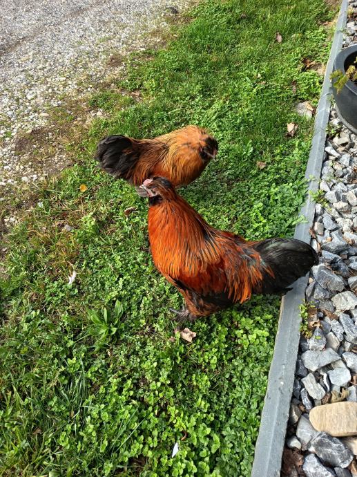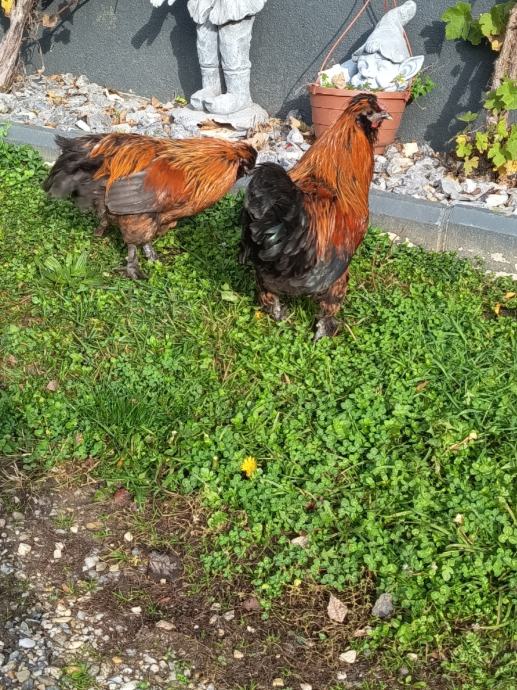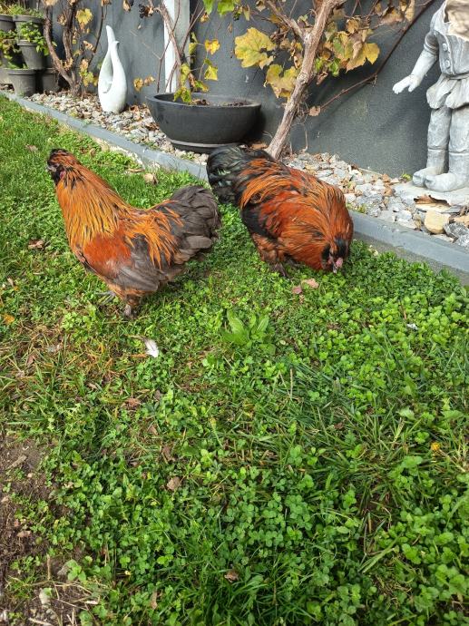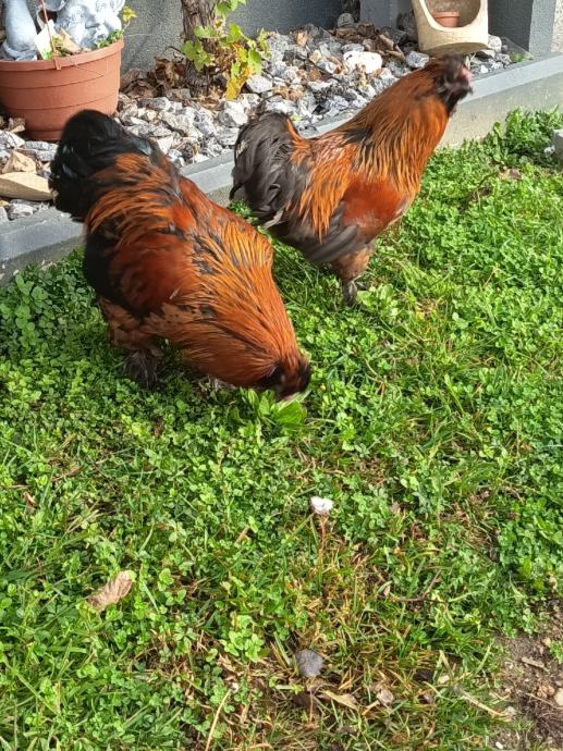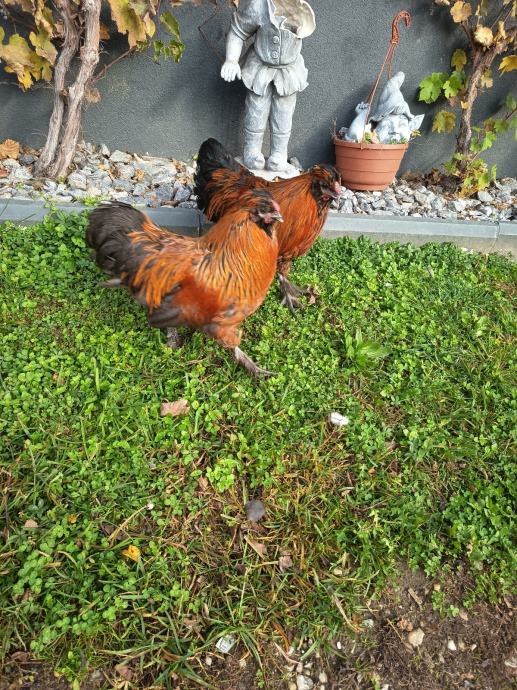 Prodam mlada petelina sta zlata oranžna črna barve cena enega je 15€ oba pa sta 30€ sta prijazna do ljudi
