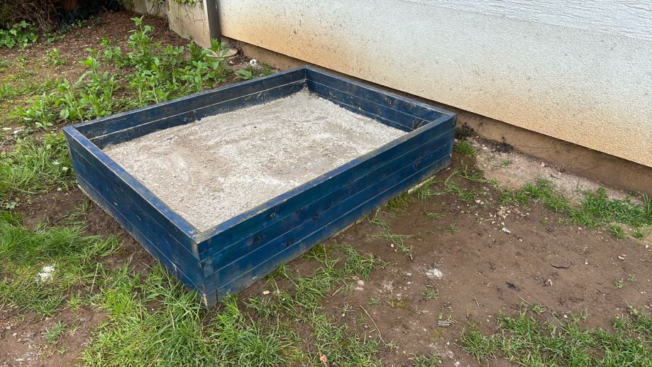 Prodam peskovnik dimenzij 160 x 130 x 30 cm. Ima lesen obod in dno iz gradbene tkanine, ki prepusca vodo. Pordajam peskovnik - obod in dno, kupec lahko odnese še pesek (t.j. sam poskrbi za vrece in odvoz).