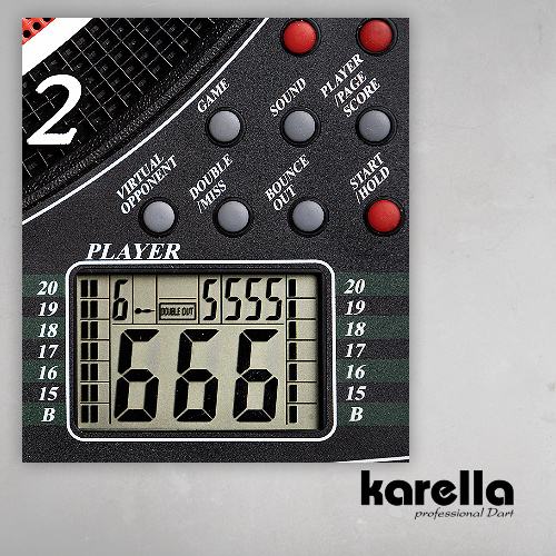 Pikado priznane nemške blagovne znamke Karella, katerih specialnost je izdelava kvalitetnih elektronskih stenskih pikad, z kvalitetno turnirsko tarčo z rdečimi in modrimi segmenti in belo pajčevino. Odličen in eden izmed najbolj prodajnih pikado aparatov za odlično ceno, ki vam bo dolgo in zadovoljivo služil.