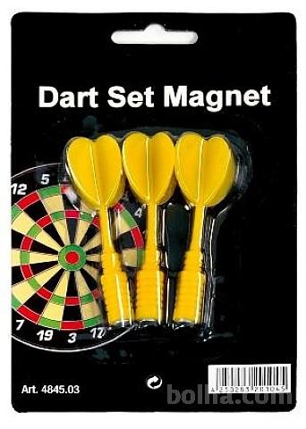Magnetna pikado tarča "Kiddy Dart" z dvema priloženima setoma (3 rumene in 3 rdeče) pikado puščic z magnetno konico za varno in samostojno otroško igro. V naši ponudbi so vam na voljo tudi magnetne pikado puščice v beli in črni barvi.
