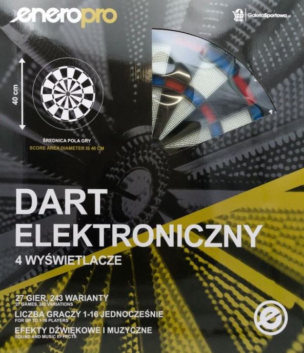 Pikado tarča za do 16 igralcev hkrati. 243 različic in 27 iger zagotavlja raznolikost in oddih od rutinskega igranja. Velika velikost pikada in kontrastne barve vam bodo pomagale zadeti tarčo. Zvočni učinki bodo še dodatno poudarili trenutek zmage. Posebne luknje v ohišju omogočajo montažo na steno. Napajanje s priloženim napajalnikom ali baterijami (niso priložene). Zamenljive konice zagotavljajo hitro zamenjavo v primeru poškodb. Priložene puščice in zamenljive konice zagotavljajo odlično igro takoj po odprtju škatle in enostavno popravilo v primeru poškodbe.Skupne dimenzije: 50 x 4 x 56,5 cm (Š x G x V)4 zasloni: 4 LCD-zasloniPremer igralnega polja: 40 cm27 iger, vključno z 243 različicamiŠtevilo igralcev: od 1 do 16 hkratiGlasovni in zvočni signali: daSamodejni izklop/način mirovanja po 30 minutahNapajanje: 4 x 1,5 V AA baterije (niso priložene) ali napajalnik (priložen)6 puščic z rezervnimi mehkimi konicamiLuknje za stensko obešanje: daJezik pikada: angleščinaGlas in zvok: daZaslon: LEDNeto teža: 1,630 kgUpravljanje s pritiskom na gumbVeč podatkov o izdelku si oglejte na tej povezavi