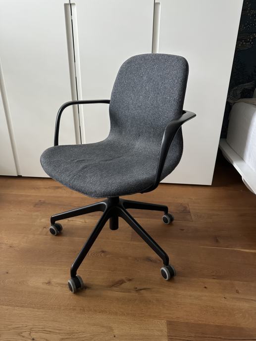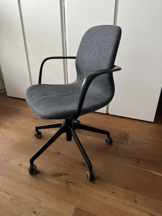 IKEA pisarniški stol s kolesci, iz sive tkanine. Dobro ohranjen. Nastavljiva višina.