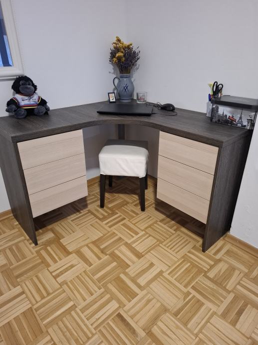 Prodam kotno pisalno mizo z 6 predali. Dolzina 120 cm iz vsake strani. Visina 75 cm. Super ohranjena. Narejena po narocilu.