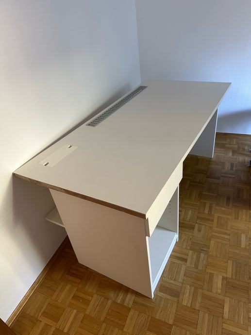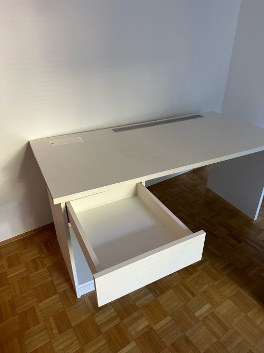 Masivna pisalna miza iz iverala s predalom in polico.