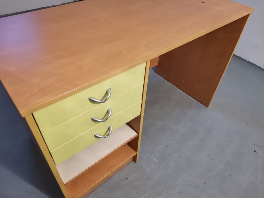 Prodam lepo ohranjeno pisalno mizo Alples s tremi predali in poličko. Dimenzije: 120 x 60 cm.