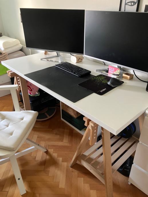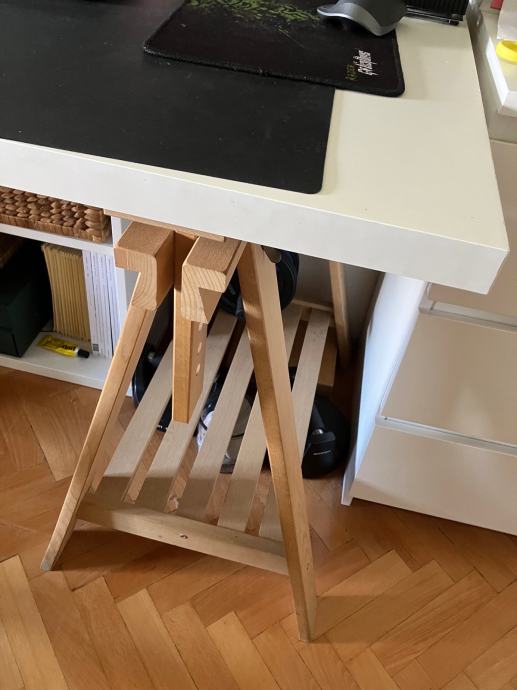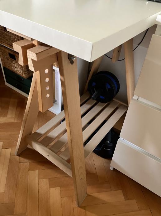 Prodam pisalno mizo Ikea, sestavljeno iz mizne plosce z merami 75x150 in dveh lesenih “nog” s policko, ki sta tudi nastavljivi po visini.