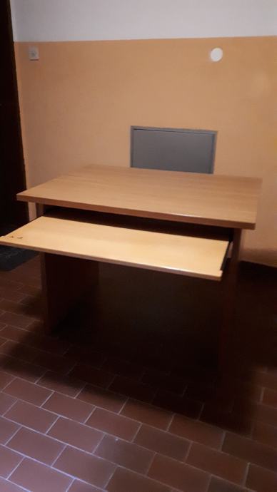 Pisalna miza, lesena, trdna, kvalitetna z izvlecno mizico za tipkovnico. Dimenzije: sirina 100 cm, globina 78cm, visina 75 cm. Potrebno jo je sestaviti.