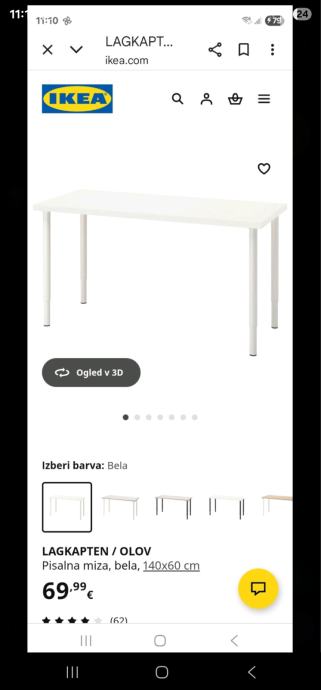 Pisalna miza z nastavljivimi nogami sestavljena in takoj razstavljena ker ni pasala v prostor..