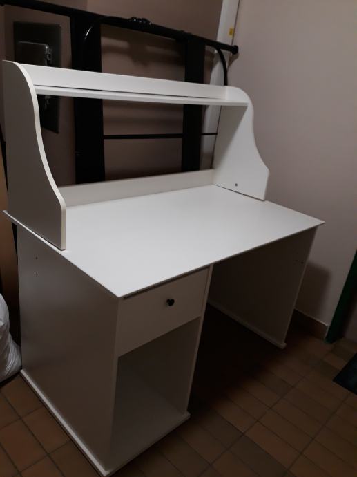 Prodam lepo pisalno mizo dim. 120/70cm, bele barve. Ima dodatno poličko nad pisalno površino.