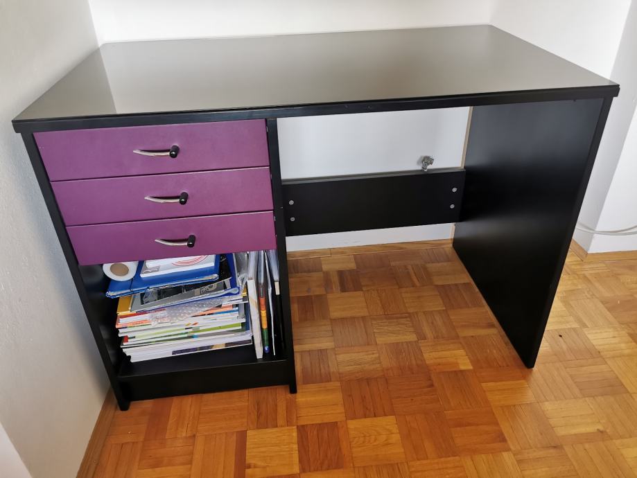 Prodam ohranjeno pisalno mizo Alples s predali, zraven je še steklo za pisalno površino.