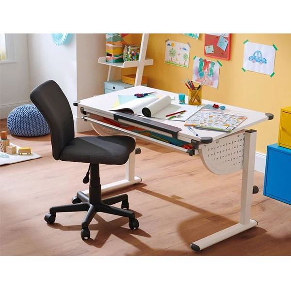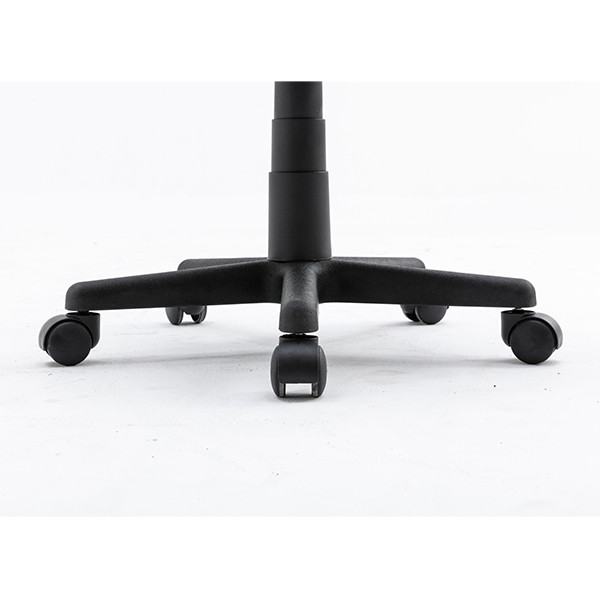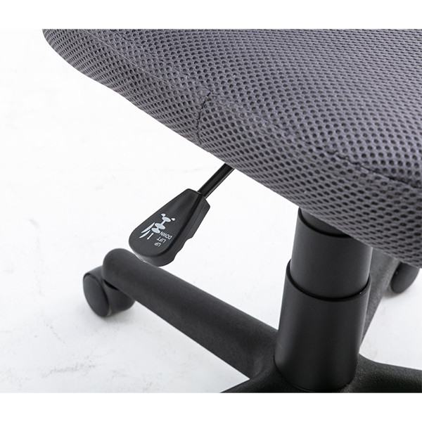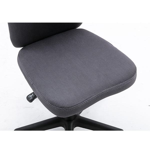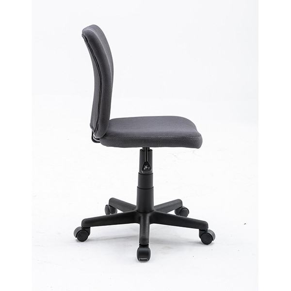 Preprost pisarniški stol, primeren za mladinsko sobo, z ergonomsko oblikovanim naslonom. Stol je oblazinjen s kvalitetno, zračno, mrežno tkanino v sivi barvi. Je vrtljiv in nastavljiv po višini. Sedišče ima v notranjosti peno, za bolj udobno sedenje. Podnožje stola je plastično in ima 5 gladko vrtečih plastičnih kolesc.