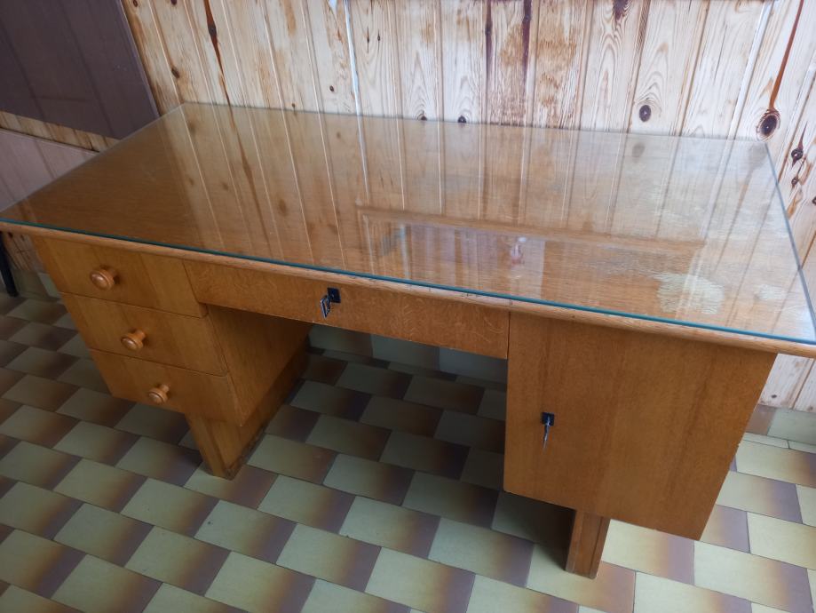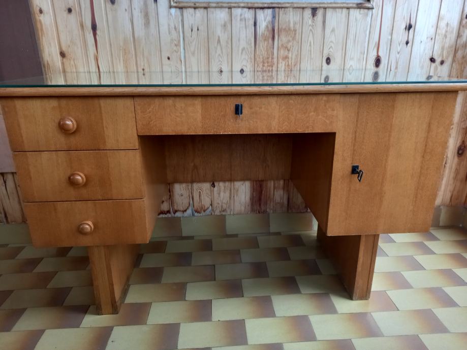 Prodam rabljeno pisalno mizo, lesene fronte, delujoči ključavnici v predalu in omarici. Na mizi položeno steklo, pod katero je možno nastaviti poljubno sliko - poster. 040 326580