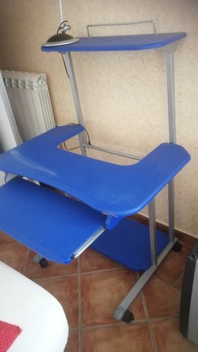 Prodam računalniško mizico na koleščkih, z izvlečno poličko za tipkovnico. Zgornja polica rahlo poškodovana. Kovinska konstrukcija, stabilna. Info 041487649