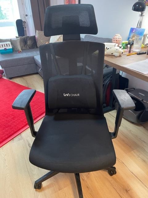 Prodam odlično ohranjen UVI Fokus pisalni stol. Stol je v celoti prilagodljiv in zelo kvaliteten. Zadaj je minimalna lepotna poškodba, ki je vidna na steni. Zraven podarim UVI blazino, za dodatno podporo hrbtu.