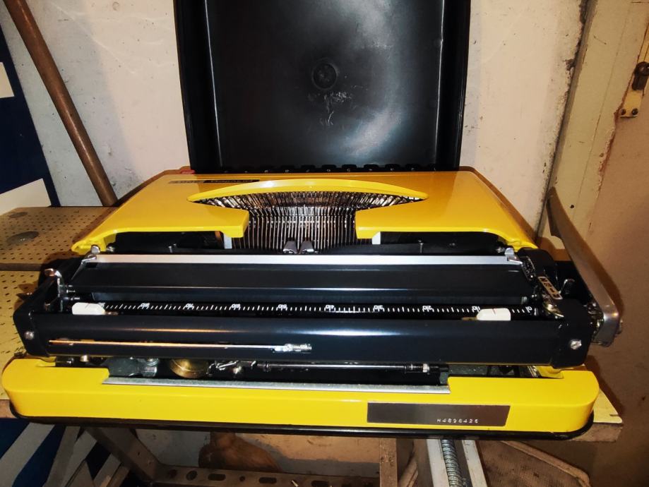 v rumeni barvi, v transportnem kovčku iz sedemdesetih let prejšnjega stoletja.