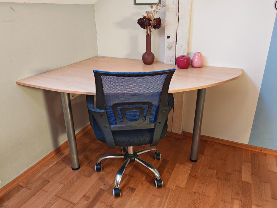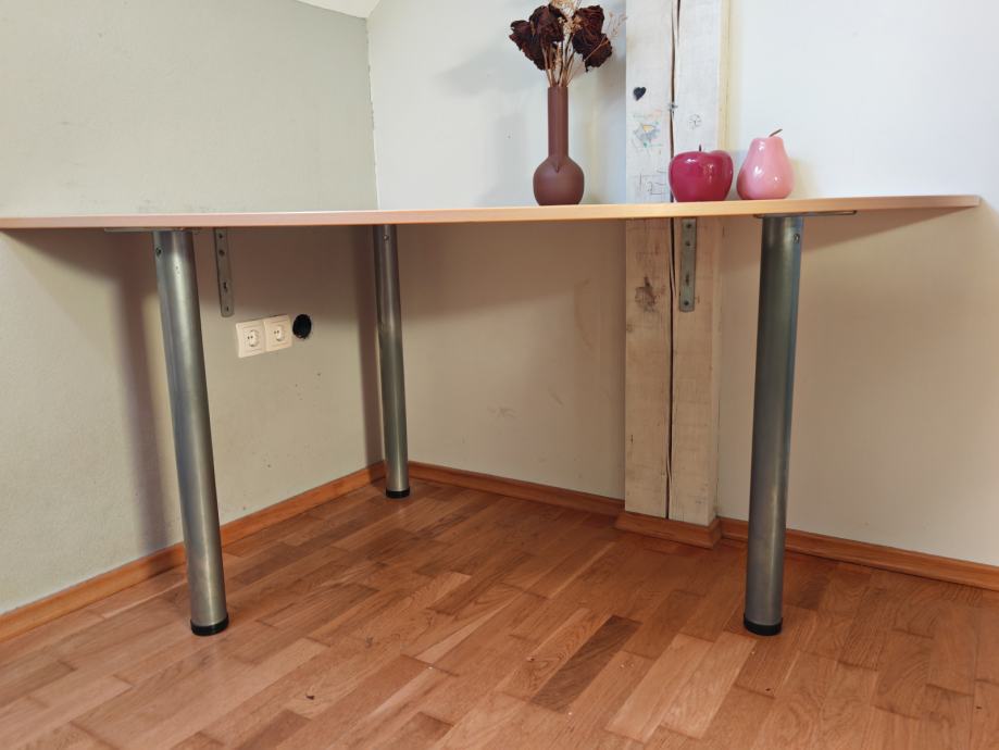 Miza je domače izdelave in ima manjši izrez, kot vidno na sliki.