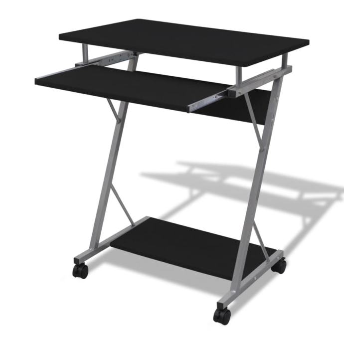 Kompaktna računalniška miza za prenosni računalnik in računalnik, ki je oblikovana posebej za prihranitev prostora, bo popestrila vašo sobo s sodobnim stilskim izgledom. Velika delovna površina omogoča udobno uporabo računalnika in pisarniškega materiala. Ta računalniška miza se ponaša z izvlečno polico za tipkovnico in spodnjo polico za računalniško ohišje ali tiskalnik. Izdelana iz iverne plošče in prašno barvanega jeklenega ohišja, vam ta računalniška miza zagotavlja leta služenja. Napotki za vzdrževanje: obrišite s krpo za prah. Miza ima tudi kolesa za preprosto prestavljanje.