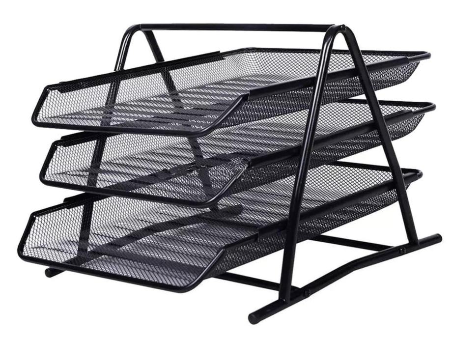 Namizni organizator za dokumente iz lahke mrežaste kovinske konstrukcije bo poskrbel za red vaših pisarniških dokumentov. Lahko se uporablja za shranjevanje knjig, šolskih map.