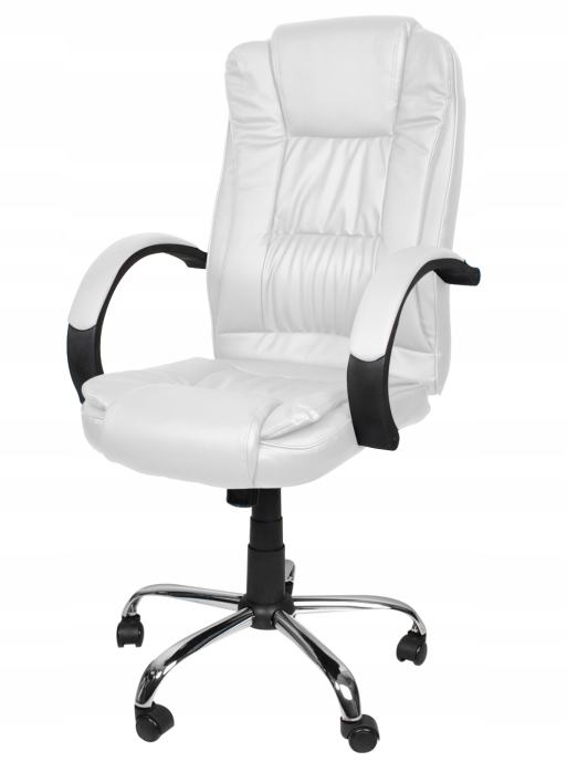 Pisarniški fotelj, ki se popolnoma prilega sedeči postavi, oblečen v mehko eko usnje . Oblikovan tako, da zagotavlja maksimalno udobje, tudi po več urah sedenja. Poleg tega ima fotelj dvojno plast gobice , kar bistveno poveča udobje uporabe. Visok, vgrajen vzglavnik in ustrezna profilacija zagotavljata funkcionalnost in oporo za glavo, širok sedež pa omogoča več ur dela. Nasloni za roke so mehki in udobni, kar zmanjšuje bolečine v komolcih in obremenitev hrbtenice.