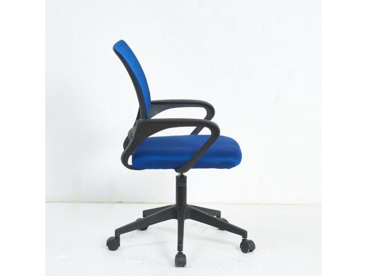 Pisarniški stol DISCO modra je vrtljiv stol, ki je nastavljiv po višini. Zagotavlja popolnoma zanesljivo uporabo ter vzdržljivost. Čvrsta podlaga in zračno mrežasto hrbtišče vam nudita udobje med celotnim delovnim časom. Naslon za hrbet je narejen iz mreže, podnožje je plastično in vsebuje gumijaste kolesce, kar preprečuje praske po tleh.