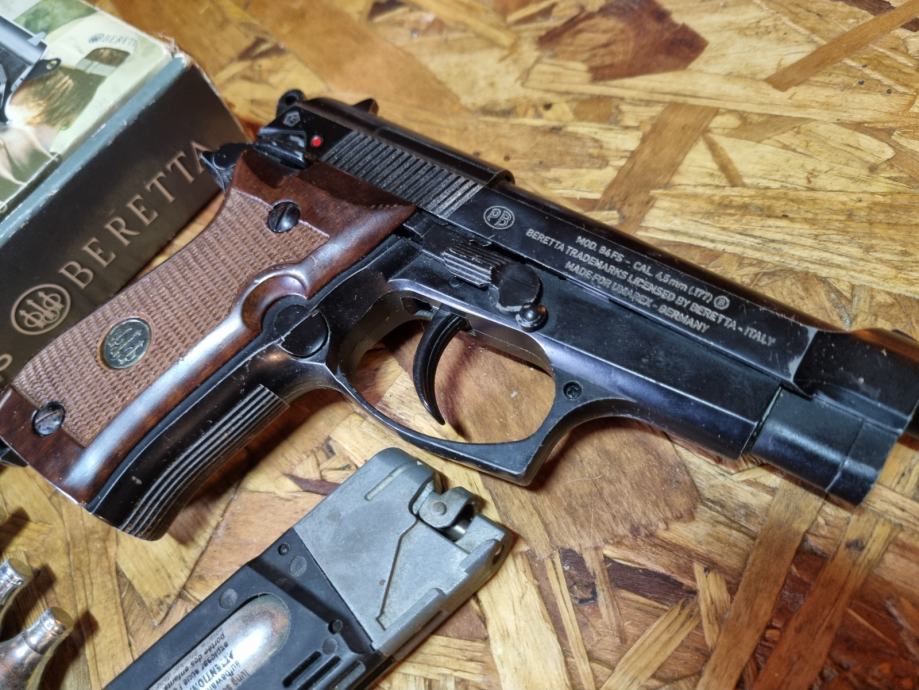 Malo rabljena replika baretta 84fs, koplet železna. Zraven dodam 3000 železnih bb kroglic in nekaj co2 bombic.
