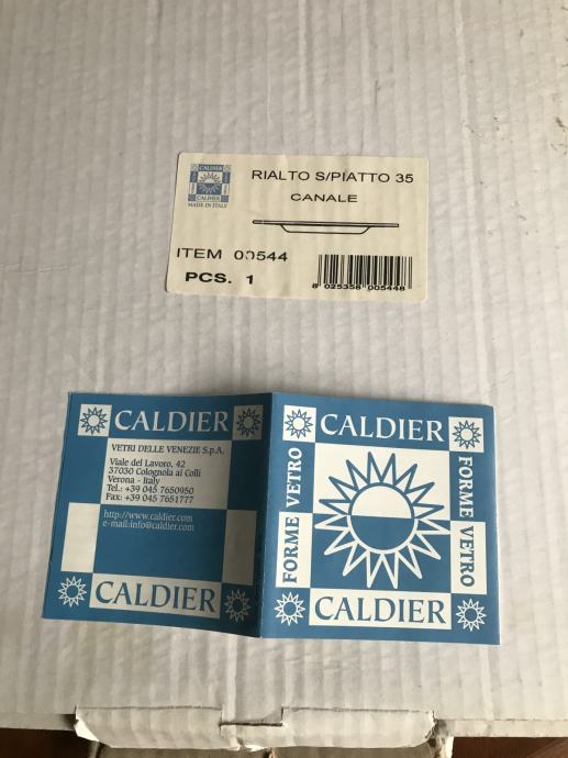 Prodam okrogel steklen pladenj za sladice, torte ali kaj drugega izdelan v Italiji, Vetri delle Venezie S.p.A., skratka kupljeno v Benetkah. Premer pladnja je 35 centimetrov. Imam še originalno embalažo.