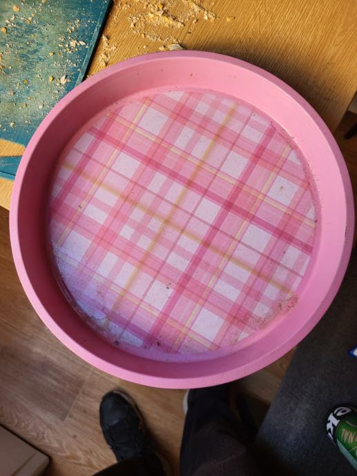 Močan ovalen pladenj srednje ohranjen za prenos šalic, kave, soka. Mere: 34,5cm X 28cm in okrogel pladenj tudi močan in srednje ohranjen mere: fi 31cm. Dosegljiv po 15 uri, ne pošiljam po pošti 041966897 bojan