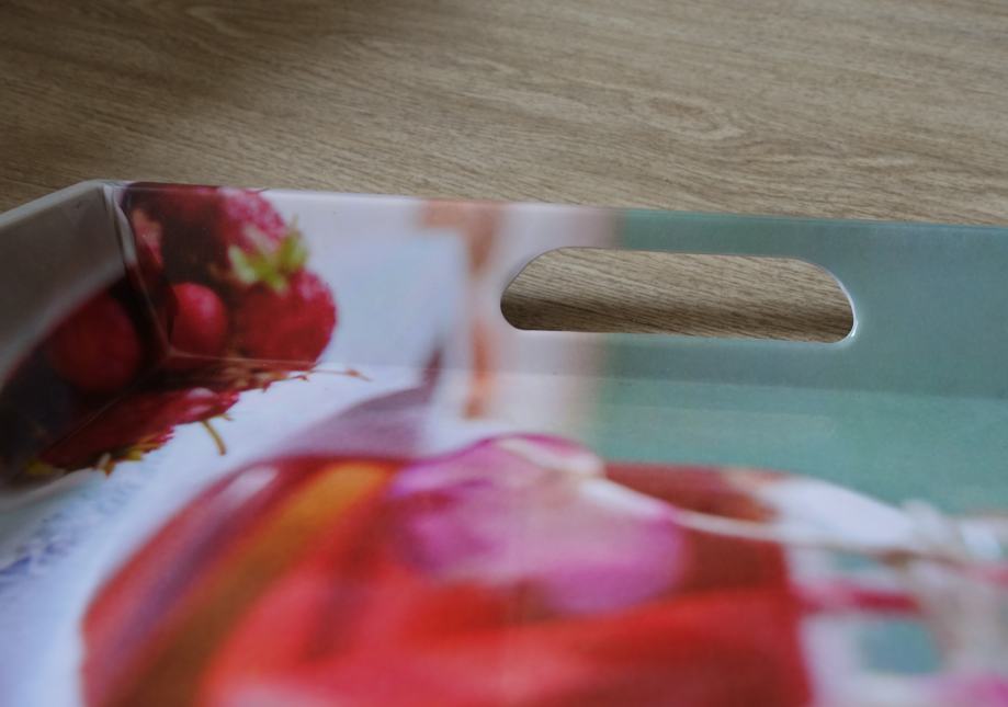Velik pladenj s 5 cm visokim robom, material plastika, lepo ohranjen.