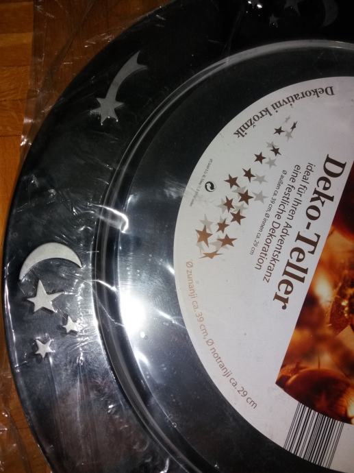 Pladenj bozični, PREMER 39 CM, z bozičnim motivom, srebrn, kovinski, v orig. embalazi