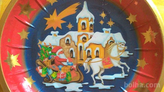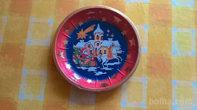 PRODAM PLADENJ Z PRAZNIČNIM MOTIVOM FI-26 CM KOVINSKI OHRANJEN UGODNO CENO SAMI DOLOČITE