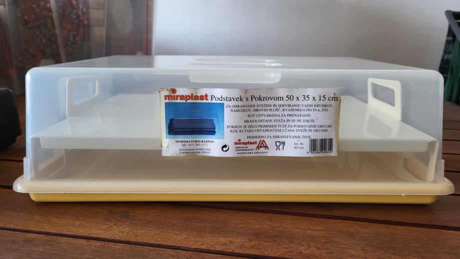 Prodam plastičen pladenj s pokrovom (50 x 35 x 15 cm). Nikoli uporabljen.