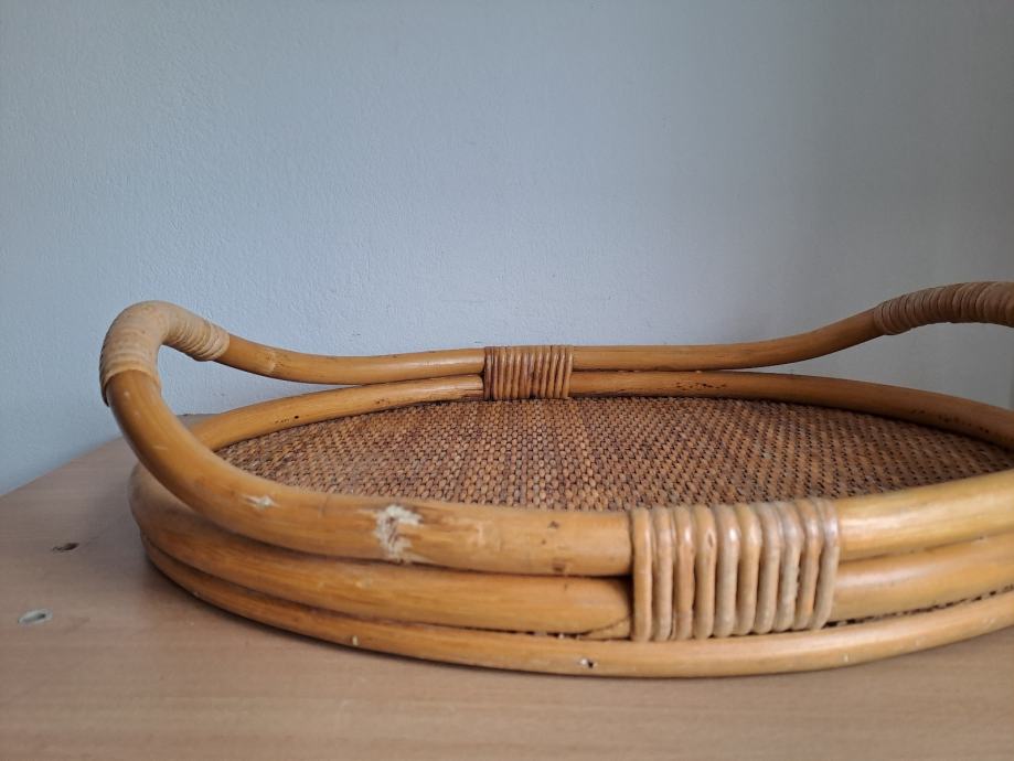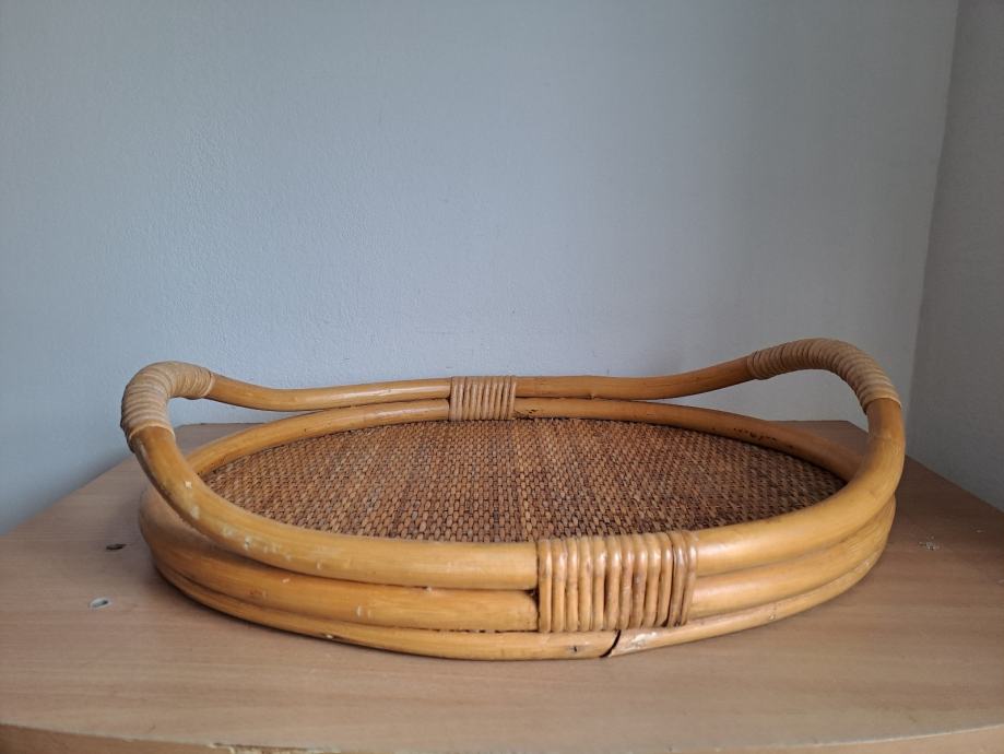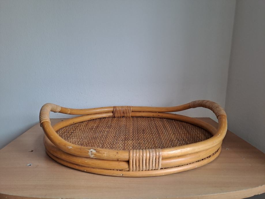 Kaže znake rabe, vendar je dobro izdelan, z ročaji in ojačanim dnom. Info na slikah.45 x 37 cm