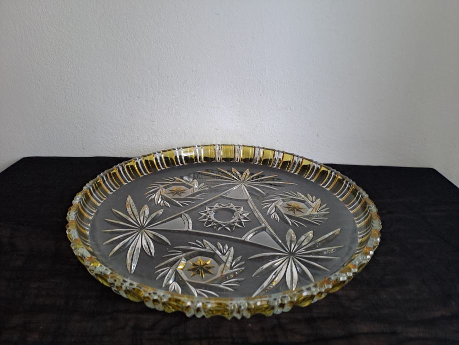 Lep, vintage pladenj za serviranje peciva iz debelega stekla. Nekaj je sledi uporabe kot drobne praskice, , steklo ni nič okrušeno ali počeno