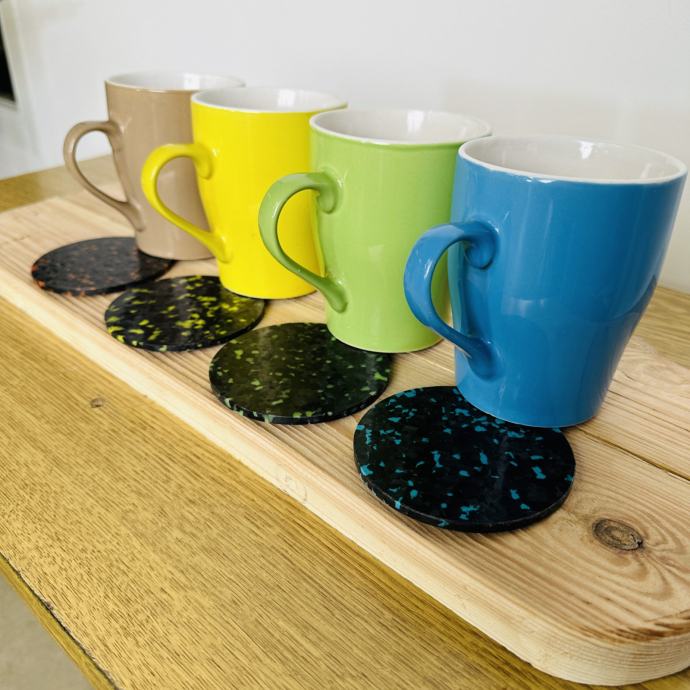 Podstavek za kozarec je narejen iz 100 % reciklirane PP plastike, ki je tehnološki ostanek Beti d.d..