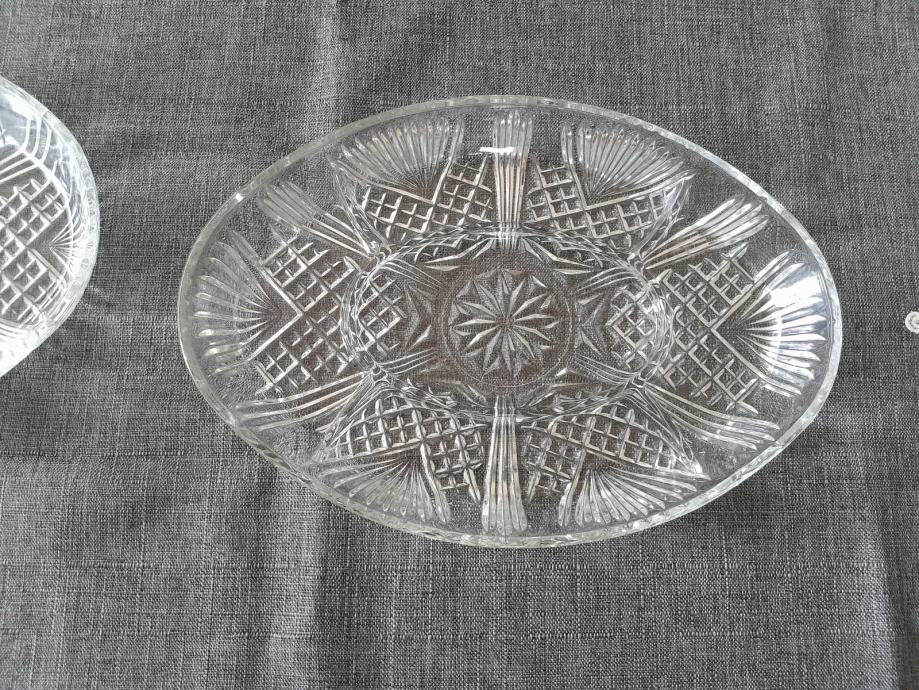 Prodam 2 steklena ovalna pladnja vel. 32 x 22 cm, nerabljena v original embalaži. Ima več razdelkov, primerno za prigrizke , pecivo, sadje itd.
