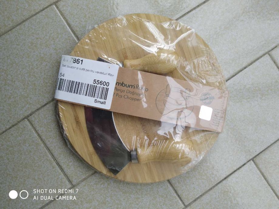 Zapakirano rezilo z bambusovo desko za sekljanje,premer deske 20 cm