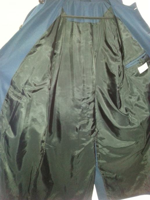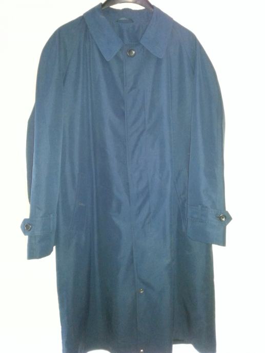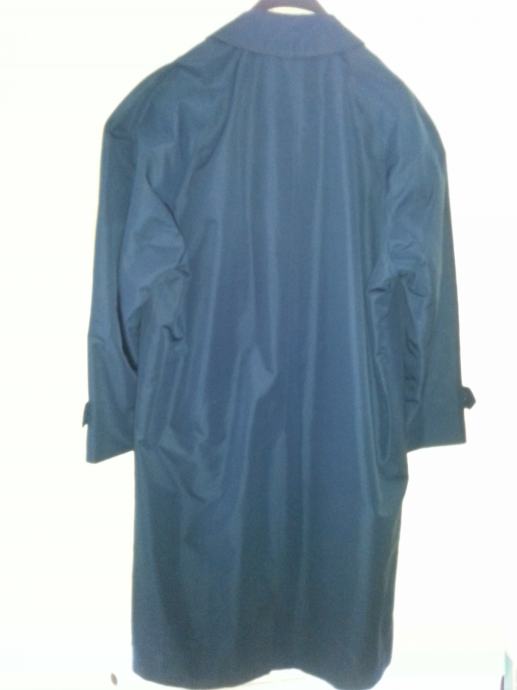 Prodam elegantni moški plašč-balonar s podlogo, temno modre barve, Varteks, št. 26 (52). Plašč je primeren za deževne dni, saj je vodoodbojen. Ima dva zunanja in en notranji žep. Načeloma ni bil uporabljan in je v odličnem stanju.Zapenja se z gumbi; na spodnjem delu ima dva pritiskača (drukerja) za večjo stabilnost (se ne odpira) v vetrovno-deževnem vremenu.