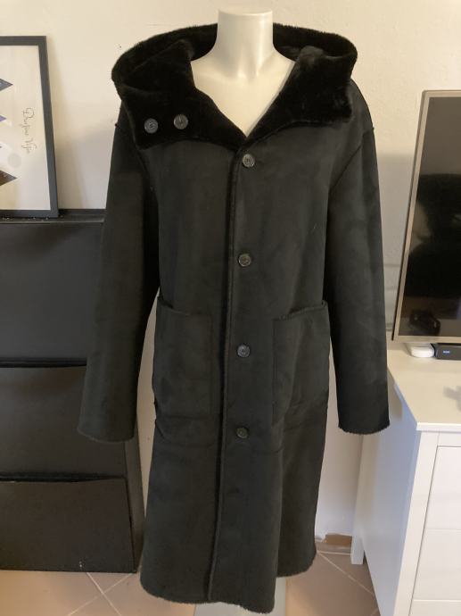 Popolnoma nov double face plašč znamke Blumarine linija Blugirl, italijanska številka 48, primeren tudi za manjšo številko saj se lahko nosi oversized in rokavi se lahko zavihajo. Plašč je double face, lahko se ga nosi na obe strani.Plačan 770 €.