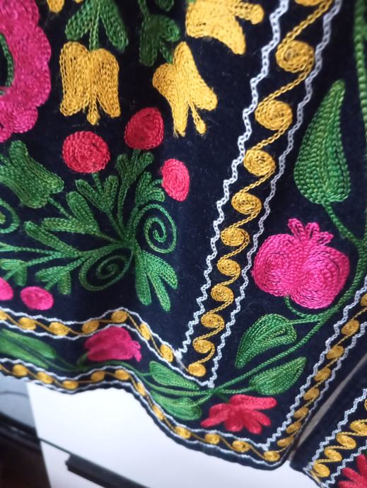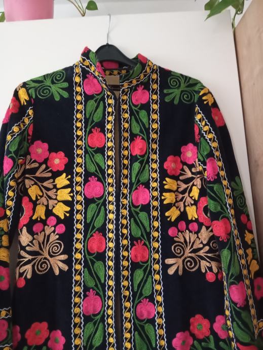 Izredno lepo ohranjen, nošen max 3x, višji cenovni razred, podložen, ni raztegljiv, s cvetlično vezenino, od ene pazduhe do druge meri 50cm, od enega ramenskega šiva do drugega je 42cm, dolžina je 95cm, ne menjam, ptt ni vključena v ceno