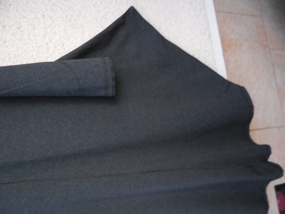 Zelo kvalitetna dolga široka jopica /plašč s kapuco in etiketo.