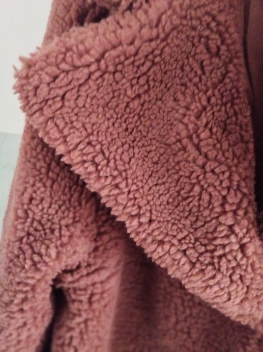 Krasna daljsa jakna oz. polplašč, kosmat in zelo topel, primeren za celo zimo.