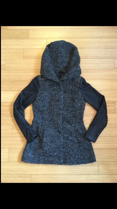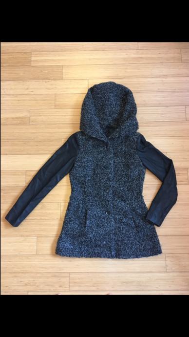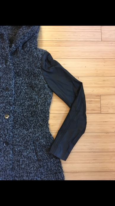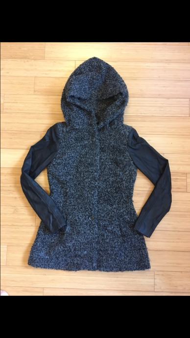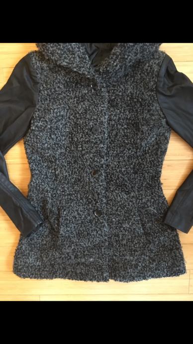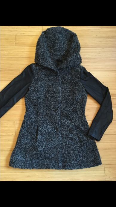 Prodam siv topel plašč z umetno usnjenimi rokavi. Primerna je za xs. Nošen a lepo obranjen.