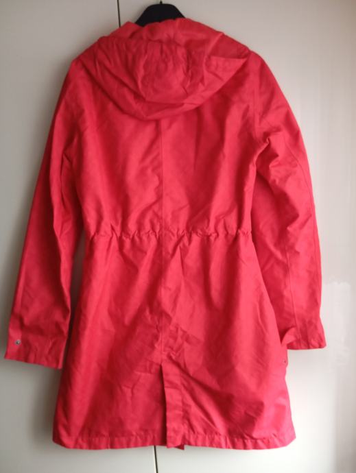 Lepo ohranjen, podložen z mrežasto tkanino, ni premočljiv, od ene pazduhe do druge meri 48cm, v pasu ima vpeljano elastiko in meri 36 do cca 44cm, dolžina je 85cm, ne menjam, ptt ni vključena ceno