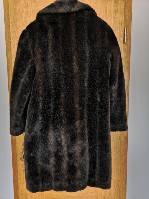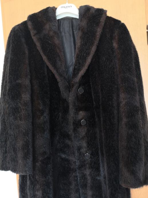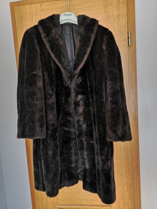Prodam vintage tedy plašček temno rjave barve iz umetnega krzna, kvalitetno izdelan, podložen, z lepimi gumbi in s stranskimi skritimi žepi. Dolžina je 95 cm, rame 45 cm, prsa 55 cm, rokav od ramenskega šiva 58 cm. Plašč je odlično ohranjen, topel, eleganten, malo nošen in brez napak.