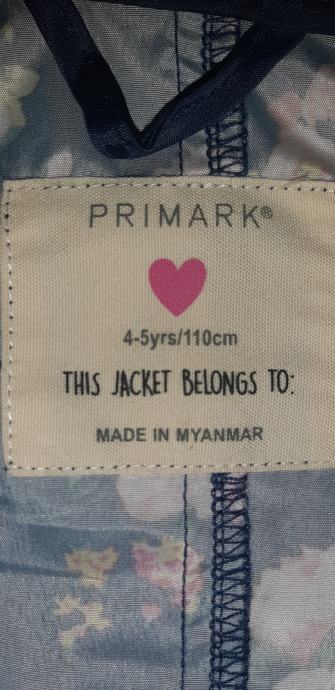 Dekliški, otroški plašč spomladanski jesenski 110, za 4-5 let, Primark