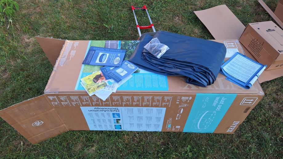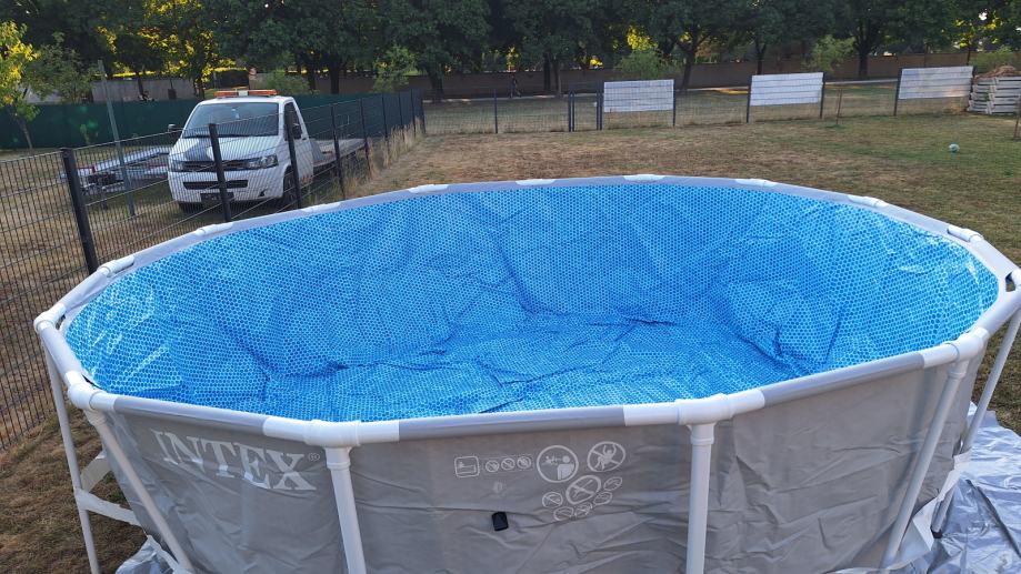 Prodam nov nerabljen bazen intex, okrogel premera 457 cm, višina 122 cm. Vključena lestev, črpalka in podloga. Ni v originalni embalaži.